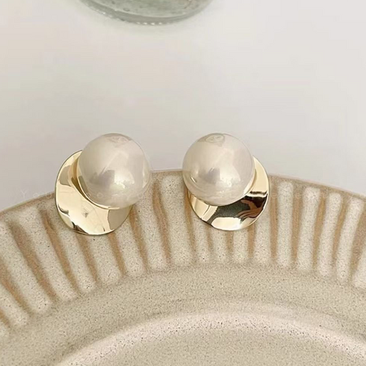 Moon Song - Class C-shape 925 Sterling Silver Freshwater Pearl Stud Earrings